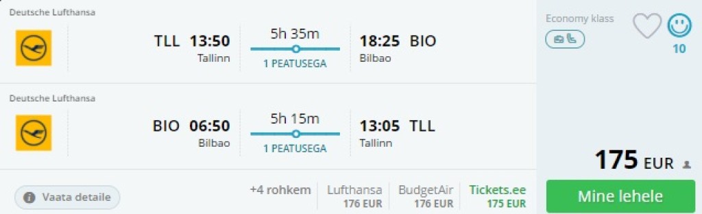 Teised lennukuupäevad leiad: [Lufthansa suveks Hispaaniasse: edasi- tagasi Tallinnast Bilbaosse või Santiago De Compostelasse al 175€](https://trip.ee/odavad-lennupiletid/lufthansa-suveks-hispaaniasse-edasi-tagasi-tallinnast-bilbaosse-voi-santiago-de-compostelasse-al-175)