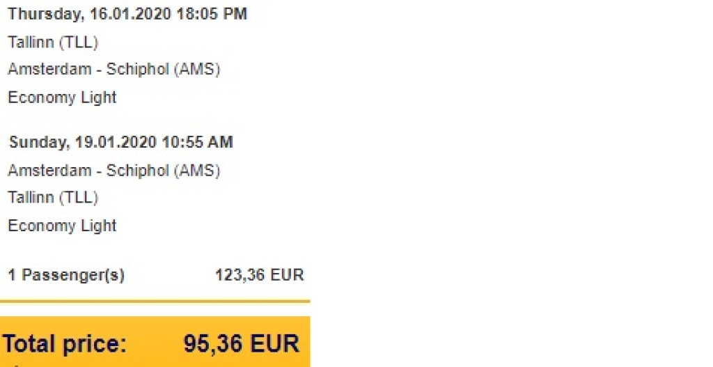 ####LENNUPILETID TALLINNAST AMSTERDAMI