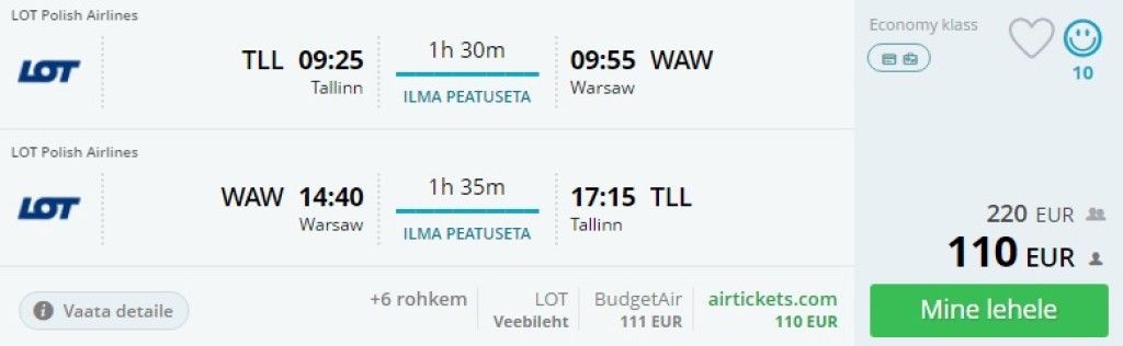 Näidiskuupäevad:19.01-21.01 110€26.01-28.01 110€