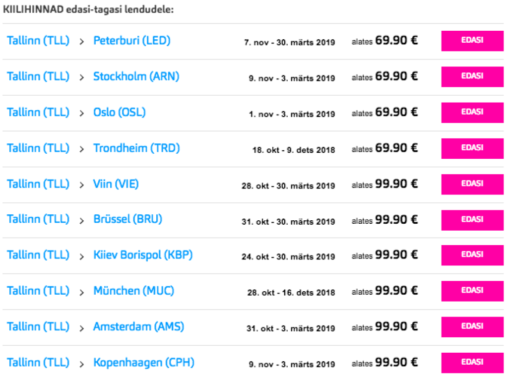 Nordical algas kampaania kus pakutakse väga hea hinnaga edasi-tagasi lennupileteid. Valikus on mitmeid sihtkohti veetmaks pikem nädalavahetus mõnes suurlinnas. Saadavus on välja reklaamitud kuupäevavahemikel suurepärane. Tuletame meelde, et Nordica lennupiletite hinna sees on ka äraantav pagas.