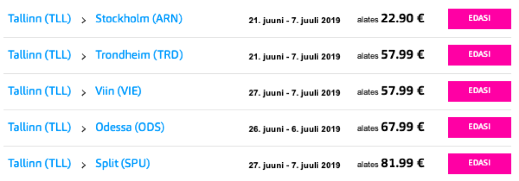 Nordical on käimas kampaania viimase hetke lendudele, kus pakutakse soodsa hinnaga lennupileteid teatud Nordica otselennu shitkohtadesse. Hea hinnaga lennupileteid leiab enamjaolt lendamiseks lähima 2-3 nädala jooksul. Soodsaimad lennupiletid otselendudele Tallinnast leiab üles alates 22.90€ eest. Kampaania kestab kuni 24.06.2019.