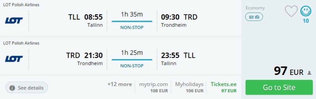 Nordica pakub praegu soodsaid pileteid hooajalistele lendudele Tallinnast Trondheimi. Edasi-tagasi lennupiletid leiab hinnaga alates 97€. Enamasti leiab soodsaimad hinnad, kui Tallinnast välja lennata reedel ja tagasi Trondheimist pühapäeval. Pileteid on saada lendudele perioodil 30. juuni - 17. dets. 2017, müük kestab kuni 11. juunini. Hinna sees on kuni 23 kg äraantavat pagasit. Vaata ka teisi Nordica häid lennupakkumisi!