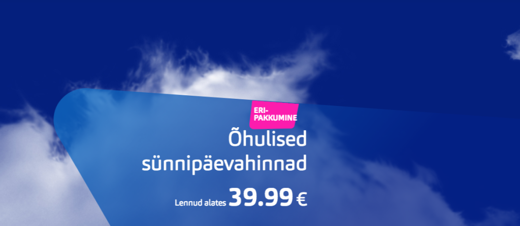 Kampaania kestab kuni 14.03.2018Lennupiletite hinna sees on lisaks käsipagasile ka 23kg äraantavat pagasit.