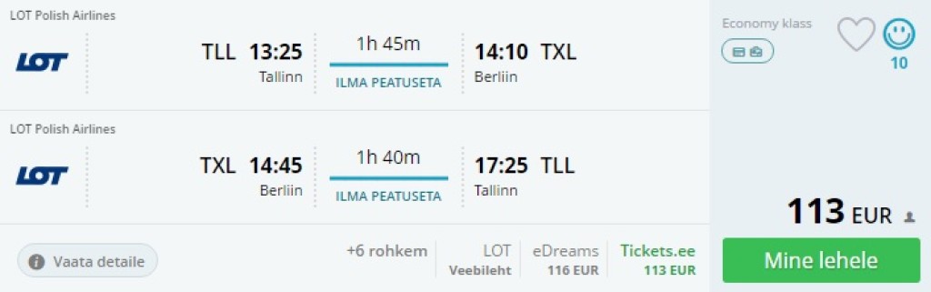 Tallinn – Berliin - Tallinn 113€