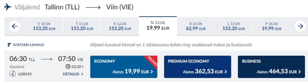 Kui otsid soodsat tagasilendu Viinist, siis kontrolli endale sobivat lennukuupäeva läbi Momondo.ee