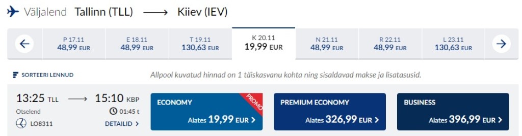 Tallinn-Kiiev 20€