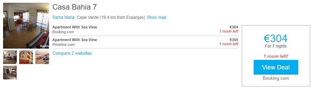 HotellisoovitusVaadata tasub näiteks merevaatega külaliskorterit Casa Bahia 7 Santa Maria ranna läheduses. Hind on kontrollitud kuupäevadel 20. november – 27. november (7 ööd).