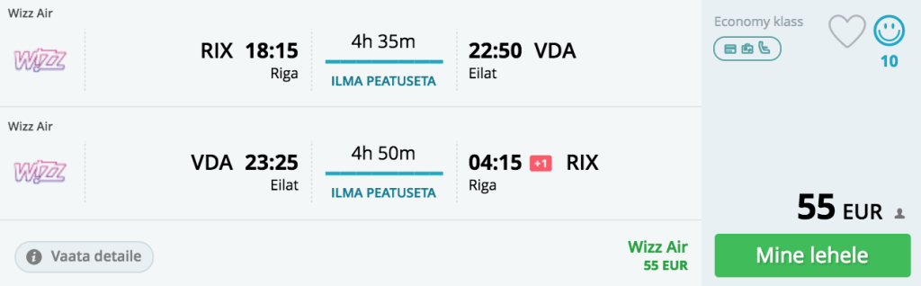 Wizzair pakub hetkel väga hea hinnaga lennupileteid minemaks juba sel või järgmisel nädalal Eilatisse. Soodsaima hinnaga edasi-tagasi lennupiletid leiab vaid 55€ eest. Tõime välja ka valiku hea hinna ning kvaliteediga hotelle veetmaks nädalane puhkus Eilatis.