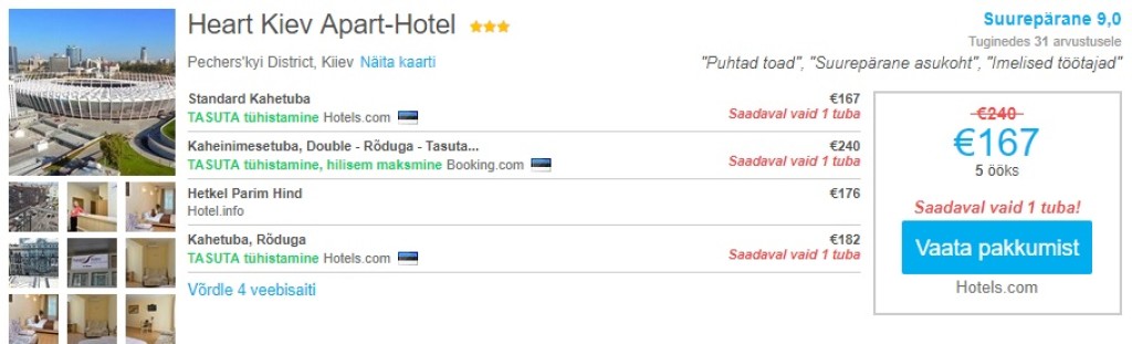 Hotellid KiievisKui otsid soodsa hinnaga öömaja Kiievis või mujal Ukrainas, siis soovitame parima ülevaate ja hinna saamiseks kasutada hotellihindade võrdlusportaali Hotelscombined.ee.