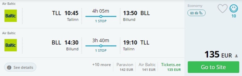 Tallinn – Billund – Tallinn 135€
