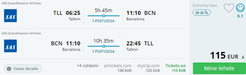 Tallinn-Barcelona-Tallinn alates 115€
