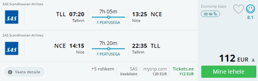 Tallinn-Nice-Tallinn alates 112€
