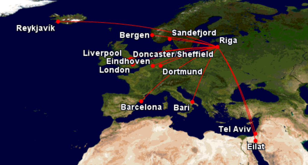 Wizzairi sihtkohad Riiast on: Barcelona, Bari, Bergen, Doncaster/Sheffield, Dortmund, Eindhoven, Liverpool, London–Luton, Eilat/Ovda, Reykjavík–Keflavík, Oslo Sandefjord, Tel Aviv–Ben Gurion