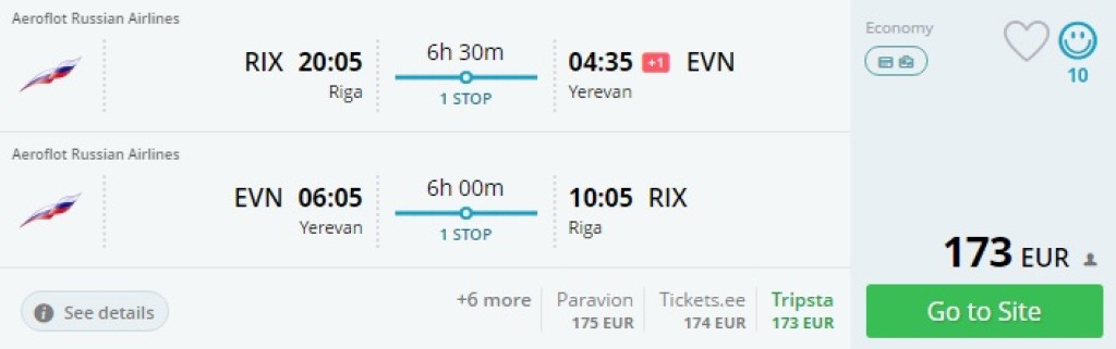 Riia – Jerevan – Riia 173€