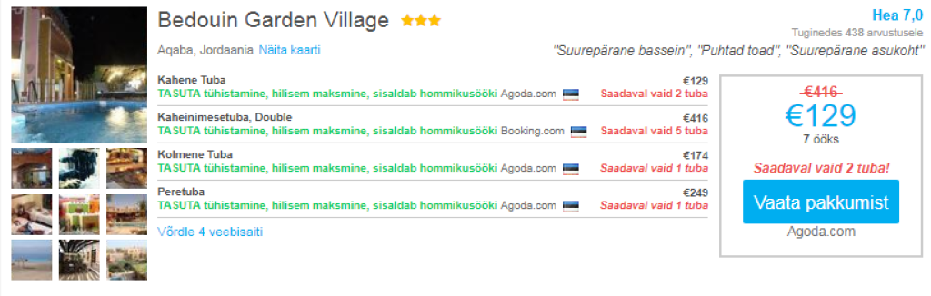 Kui otsid soodsa hinnaga öömaja Aqabas, siis soovitame parima ülevaate ja hinna saamiseks kasutada hotellihindade võrdlusportaali Hotelscombined.ee. Järgnevalt paar näidet: