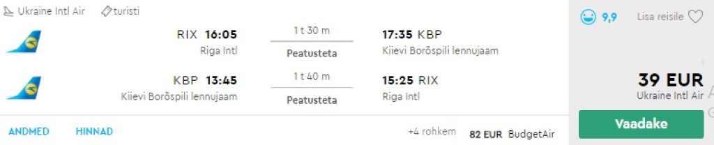 UIA'l on hetkel müügis väga soodsad otselennud varajastele broneerijatele Riiast Kiievisse. Edasi-tagasi lennupiletid on saadaval vaid 39€ eest ning alla on hinnatud peaaegu kõik kuupäevad 2020. aasta märtsiks ja aprilliks. Lendude kellaajad on väga soodsad samal päeval Riiga ja Riiast tagasi reisimiseks. Piletiteni jõudmiseks kliki allolevatel näidiskuupäevadel või kontrolli endale sobivaid kuupäevi läbi momondo.ee. Lennupiletite hinna sees on käsipagas!