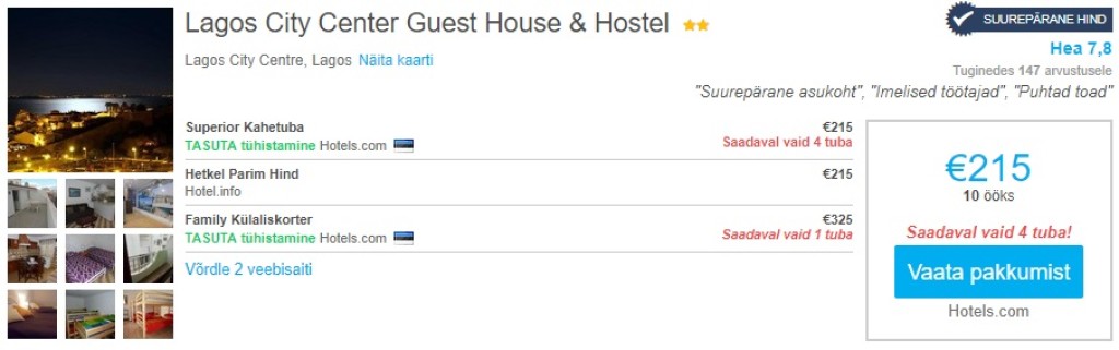 Hotellid Algarve rannikulKui otsid soodsa hinnaga öömaja, siis soovitame parima ülevaate ja hinna saamiseks kasutada hotellihindade võrdlusportaali Hotelscombined.ee.