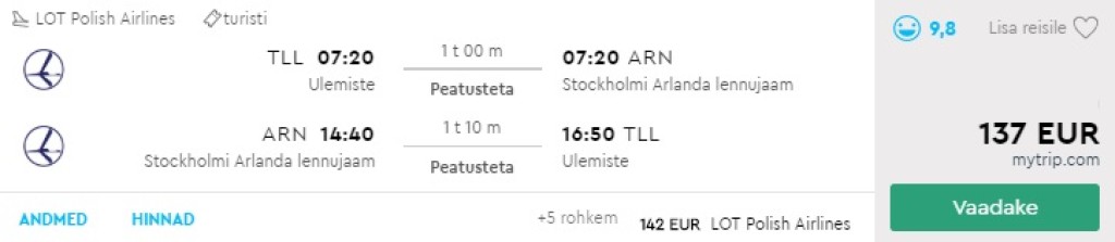 Tallinn- Stockholm- Tallinn 137€