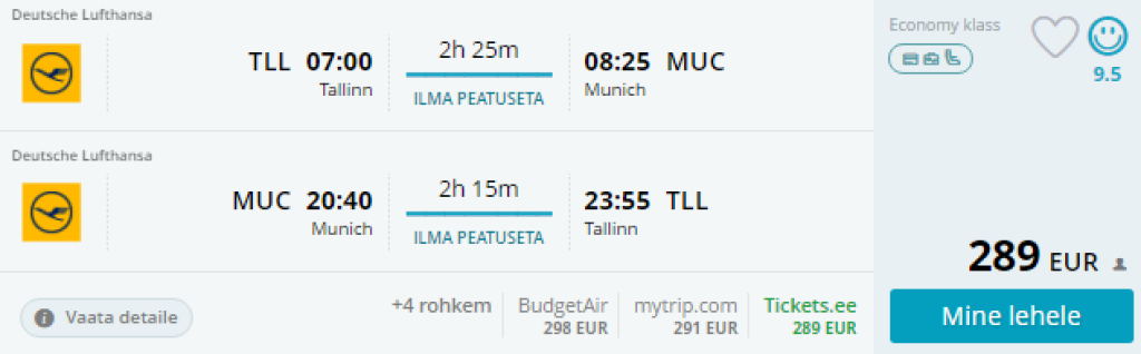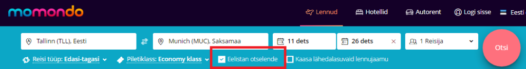 Kõnealuste piletite mugavaimaks ülesleidmiseks aktiveerige filter "eelistan otselende":
