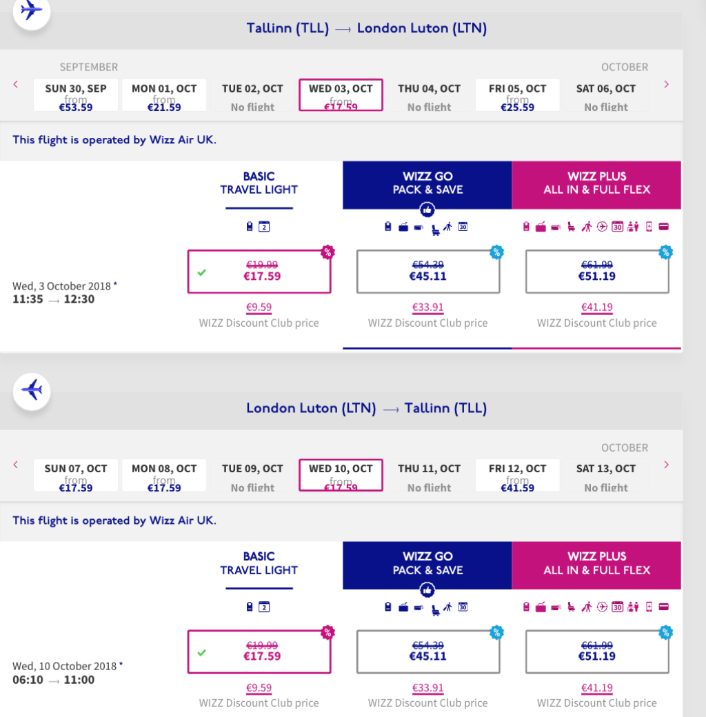 Oleme juba varasemalt soodsa hinnaga piletid üles otsinud. Kliki endale huvitavatel kuupäevadel ning soodsa hinnaga piletite ostmiseks vali vahendajaks Wizzair.