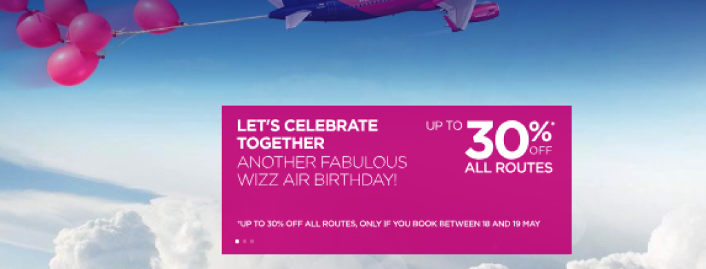 Ungari odavlennufirmal Wizzairil on käimas hetkel suur sünnipäevakampaania, kus kõik lennupiletid on kuni -30% soodsamad. Soodsa hinnaga lennupileteid leiab ka Tallinnast Kiievisse ja Londonisse. Toome allpool välja ka mõned näited hindadest. Kui sul on olemas Wizzairi klubikaart, siis saad piletid veelgi soodsamalt.Kampaania kestab kuni 19.05 ning müügiperiood on kuni järgmise aastani. Soodne võimalus otsida pileteid ka sügiseseks koolivaheajaks!