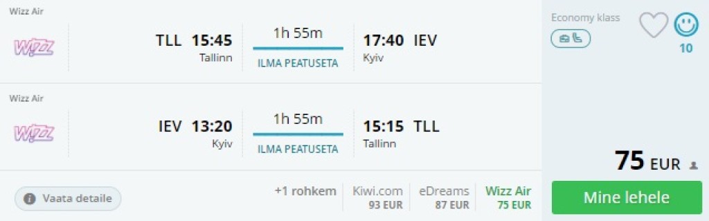 Wizzair pakub hetkel väga hea hinnaga lennupileteid suveks Tallinnast Ukraina pealinna Kiievisse. Edasi-tagasi lennupiletid on saadaval al 75€ eest ning saadavus on juuni lõpust kuni augusti keskpaigani. Ukraina on kindlasti üks soodsaimatest puhkusekohtadest Euroopas ning Kiievist saab soodsalt ühistranspordiga edasi minna nii Odessasse kui mujale Ukrainasse.