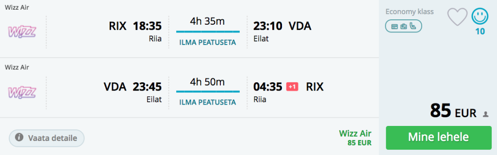 Sel nädalal tuli uudis Wizzairilt nende uue marsruudi Riia-Eilat(Ovda) kohta. Wizzair hakkab lendama Riiast Eilatisse teisipäeviti ning laupäeviti. Hetkel on võimalik edasi-tagasi lennupileteid saada alates 85€ eest. Eilat on Iisraeli kõige lõunapoolsem linn mis asub Punase mere ääres. Päevased temperatuurid on aastaringselt üle 20 kraadi ning veetemperatuur Punases meres on samuti aastaringselt üle 20 kraadi. Nädalase puhkuse Punase mere ääres koos väga hea reitinguga hotellitoaga saab hetkel kätte 287€ eest!Wizzair on odavlennufirma, seega soodsaima lennupileti hinna sees on käsipagas.