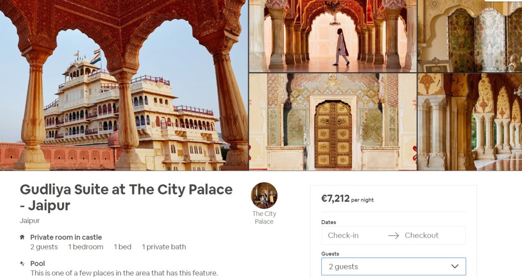 Eramajutust vahendava portaaliga Airbnb liitus hiljuti esimene sinivereline võõrustaja, kui Airbnb-s hakkas majutust pakkuma Maharaja Sawai Padmanabh Singh. 21 aastane maharadža pakub majutust Rajastanis Jaipuri palee Gudliya sviidis, mida seni on kasutatud kuningliku perekonna erikülaliste majutamiseks. Jaipuri 300 aastane linnapalee (City Palace) on India üks kõige ikoonilisemaid ehitisi, kus muuhulgas on ööbinud näiteks Jackie Kennedy, printsess Diana, prints Charles, Bill Clinton ja Oprah Winfrey.