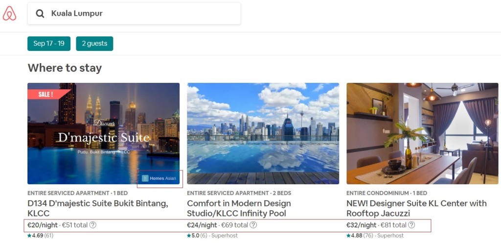 Arvutist vaadates on asi kolme esimesena väljatoodud broneeringu puhul selge – öö hind on selline, kaks ööd koos lisatasudega lähevad maksma nii palju. Klaar. Kuala Lumpuris on ühel juhul välja toodud ka see, kes on pakkuja.