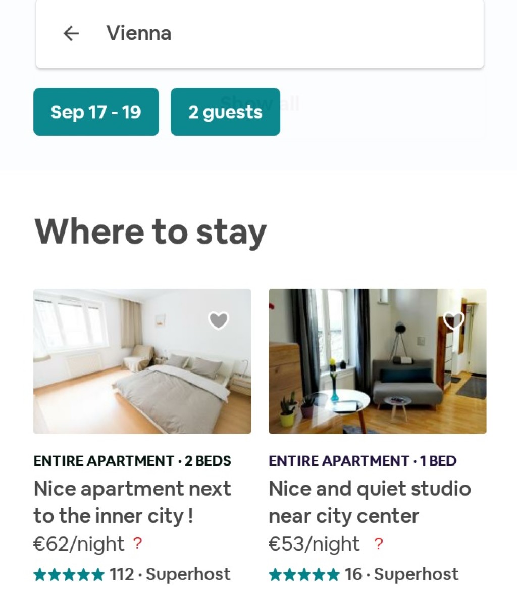 Telefonis asi enam sama selge kahjuks pole. Lõpphind kujuneb samaks, mis arvutiski, kuid telefonis esialgselt kuvatav hind ≠ lõpphind. Ausalt öeldes ei saagi aru, kust kuvatav number võetakse, sest näiteks korter Viinis, mis ilma lisatasudeta maksab 47€/öö, kuvatakse telefonis millegipärast hinnaga 62€/öö. Hinna lahtilöömisel sellist numbrit ei leia. Samuti pole välja toodud majutuse maksumust kahe öö peale kokku. Võimalik, et siin midagi veel arendatakse, kuid oodatud selgust telefonis (Airbnb rakendus oli uuendatud) vähemalt hetkel igatahes pole. Seega teeks majutuste võrdluse võimalusel ära arvutist ja broneeriks väljavalitud majutuse hiljem telefonis.