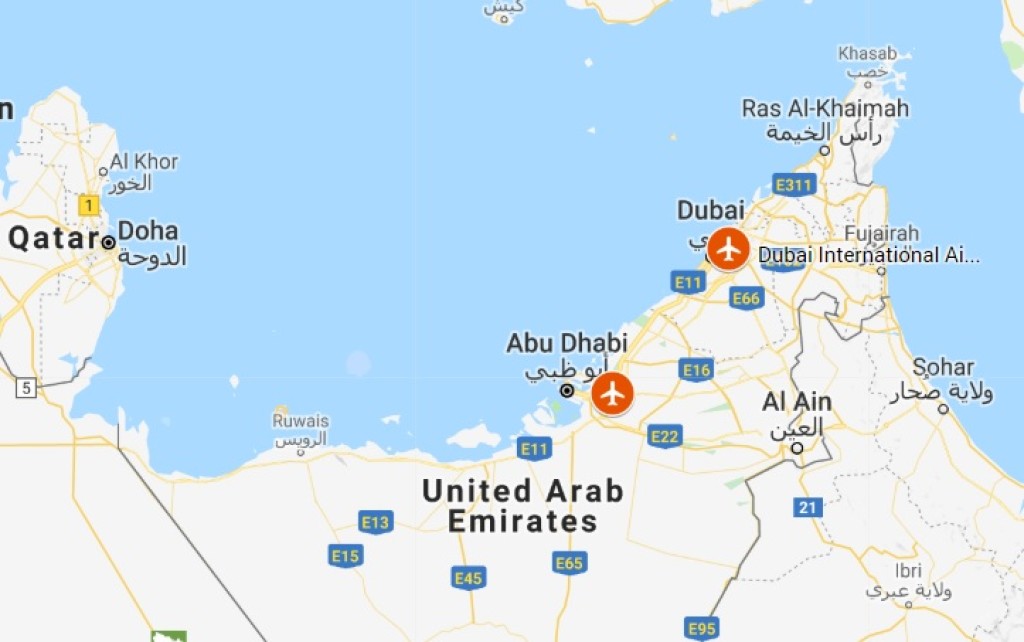 Dubai ja Abu Dhabi lennujaamad on üksteisele sedavõrd lähedal, et lendamine nende vahel pole mõttekas, kuid piisavalt kaugel, et maanteed mööda reisijate transport kahe lennujaama vahel oleks liiga vaevaline.