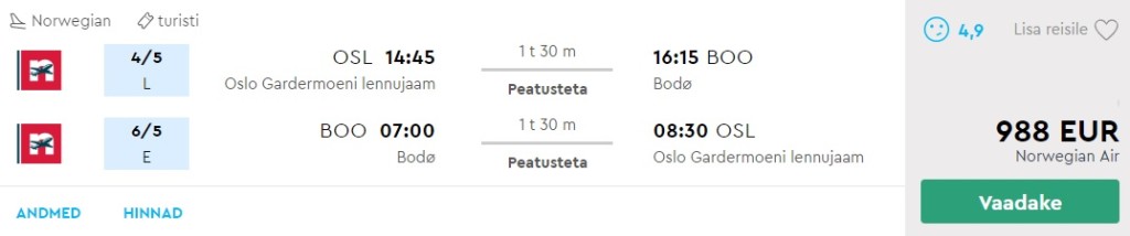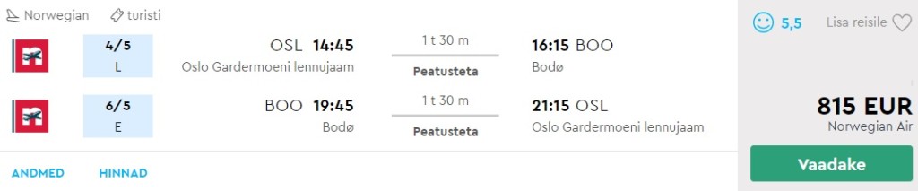 Oslo-Bodø 4.-6. mai odavaim hind.