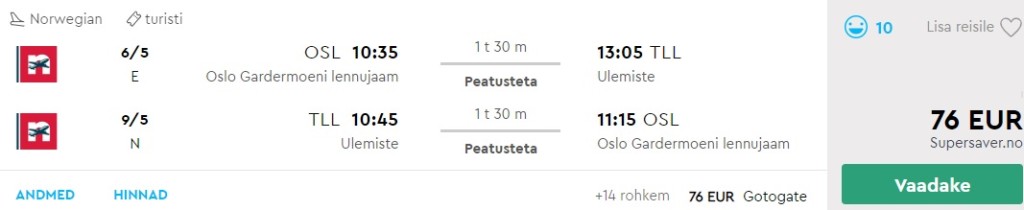 Võrdluseks: Oslost Tallinnasse ja tagasi saaks samal ajal tunduvalt odavamini.