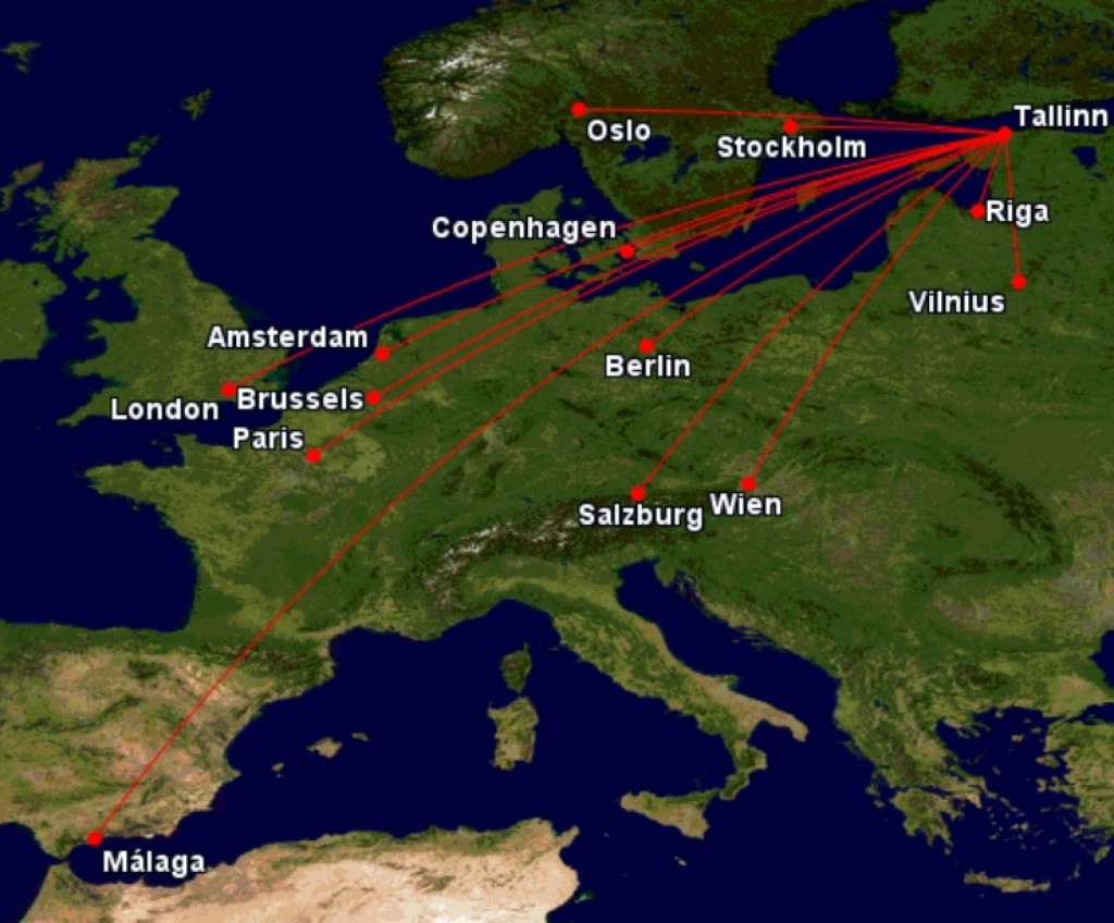 Juunis käivitunud Tallinn - Malaga liin jätkub kord nädalas laupäeviti kuni 14. detsembrini (TLL AGP 13:30 17:15, AGP TLL 18:00 23:40), hooajaline Salzburgi liin toimib 21. detsembrist 28. märtsini (TLL SZG 13:10 14:45, SZG TLL 15:45 19:15). Pariisi lennatakse 3x nädalas, perioodil 17. jaanuar kuni 1 märts jääb nädalas 2 lendu, reedel ja pühapäeval. 2. jaanuarist kuni 1. märtsini ei lennata Viini esmaspäeval, jäävad lennud N, L, P.